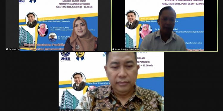 Kuliah umum yang digelar secara virtual ini menghadirkan narasumber Dosen Universitas Negeri Yogyakarta Prof. Dr. Lantip Diat Prasojo M.Pd serta dosen MMPT Pascasarjana UMSU Dr. Emilda Sulasmi M.Pd.