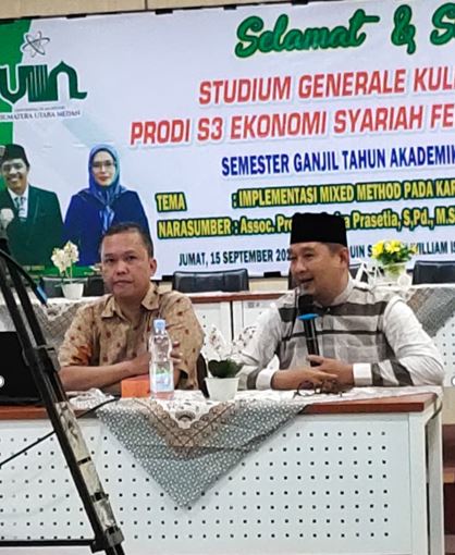 Universitas Muhammadiyah Sumatera Utara Menjalin kerjasama dengan Universitas Islam Negeri Sumatera Utara (UINSU). salah satu bentuk Implementasi kerjasama antara MMPT UMSU dengan FEBI UINSU diwujudkan dalam bentuk kegiatan pendidikan Studium General dengan pemateri Dr. Indra Prasetia, S.Pd, M.Si selaku Ketu Program Studi MMPT UMSU dengan peserta Mahasiswa S3 Ekonomi Syariah Semester Ganjil 2023/2024. pada kesempatan ini pemateri membawakan Materi Aplikasi Desain Riset Mixed Method yang dilaksanakan di Aula Kampus FEBI UINSU beralamat di Jalan Pancing Medan.